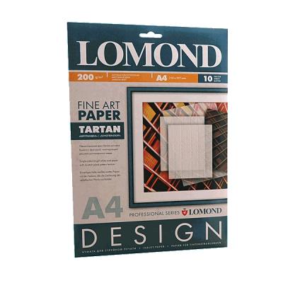 Шотландка/Tartan, 200 г/м2, А4, 10 листов.Односторонняя бумага ярко-белого цвета с фактурой,имитирующей рисунок шотландского пледа.Матовая.Для всех видов настольных струйных принтеров.Для печати пигментными и водорастворимыми чернилами.Толщина бумаги 245 мкм