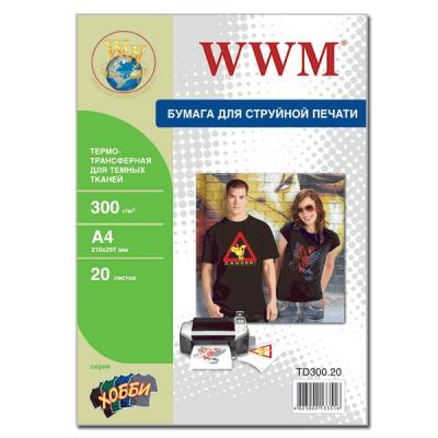 Термотрасфер для струйных принтеров WWM A4 для темных тканей 300 г/м ( 20л) (TD300.20)