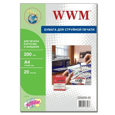 Фотобумага дизайнерская WWM Fine Art А4 200 г/м для печати бейджей 20л (CD0200.20)
