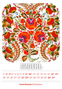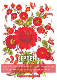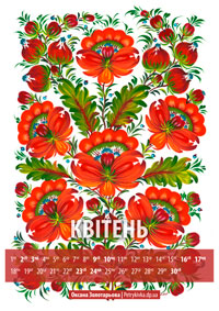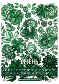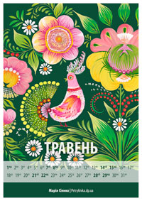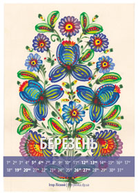 Цей чарівний календар з малюнками, виконаними у техніці петриківського розпису розробив студент Львівської національної академії мистецтв та засновник проекту petrykivka.dp.ua Ігор Лісний, який навчався розпису в Петриківській художній школі.